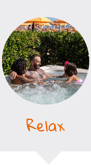 Le nostre meravigliose vasche idromassaggio con aromaterapia e acqua 35 gradi immerse nel verde e la nostra ampia area relax con poltrone e tavolini, sono una piacevole e rilassante alternativa che la nostra spiaggia offre per rigenerarsi nelle giornate più calde e assolate.